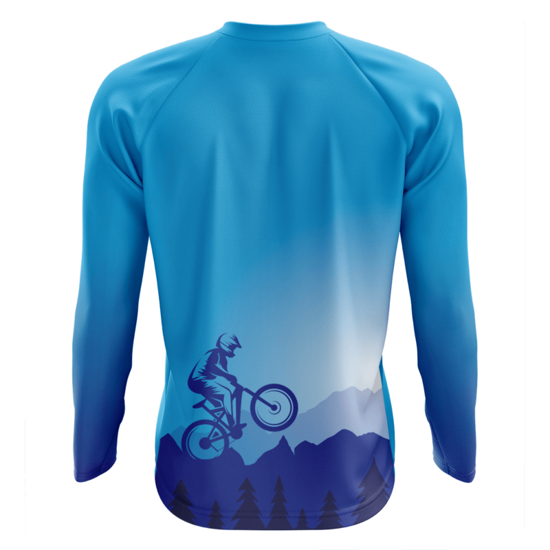 Lekka i przewiewna koszulka sportowa z oryginalnym nadrukiem dedykowana do jazdy na rowerze MTB. Została uszyta ze specjalnego, technicznego materiału, który zapewni komfort i wygodę podczas gry. Materiał pozwala skórze oddychać, odprowadzając pot z ciała do zewnętrznej warstwy materiału i umożliwiając szybkie odparowanie potu. Dzięki temu przez cały trening użytkownik ma uczucie suchości i wygodę. Koszulka została zaprojektowana i uszyta tak, aby nie ograniczać ruchów, a jednocześnie przylegać do ciała. Dzięki zastosowanej nowoczesnej technologii druku sublimacyjnego, nadruk pozostaje trwały i odporny, zarówno na pranie, jak i czynniki atmosferyczne.